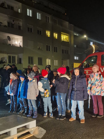 2a und der Chor musizierten und sangen beim Dorfadvent Weihnachtslieder.